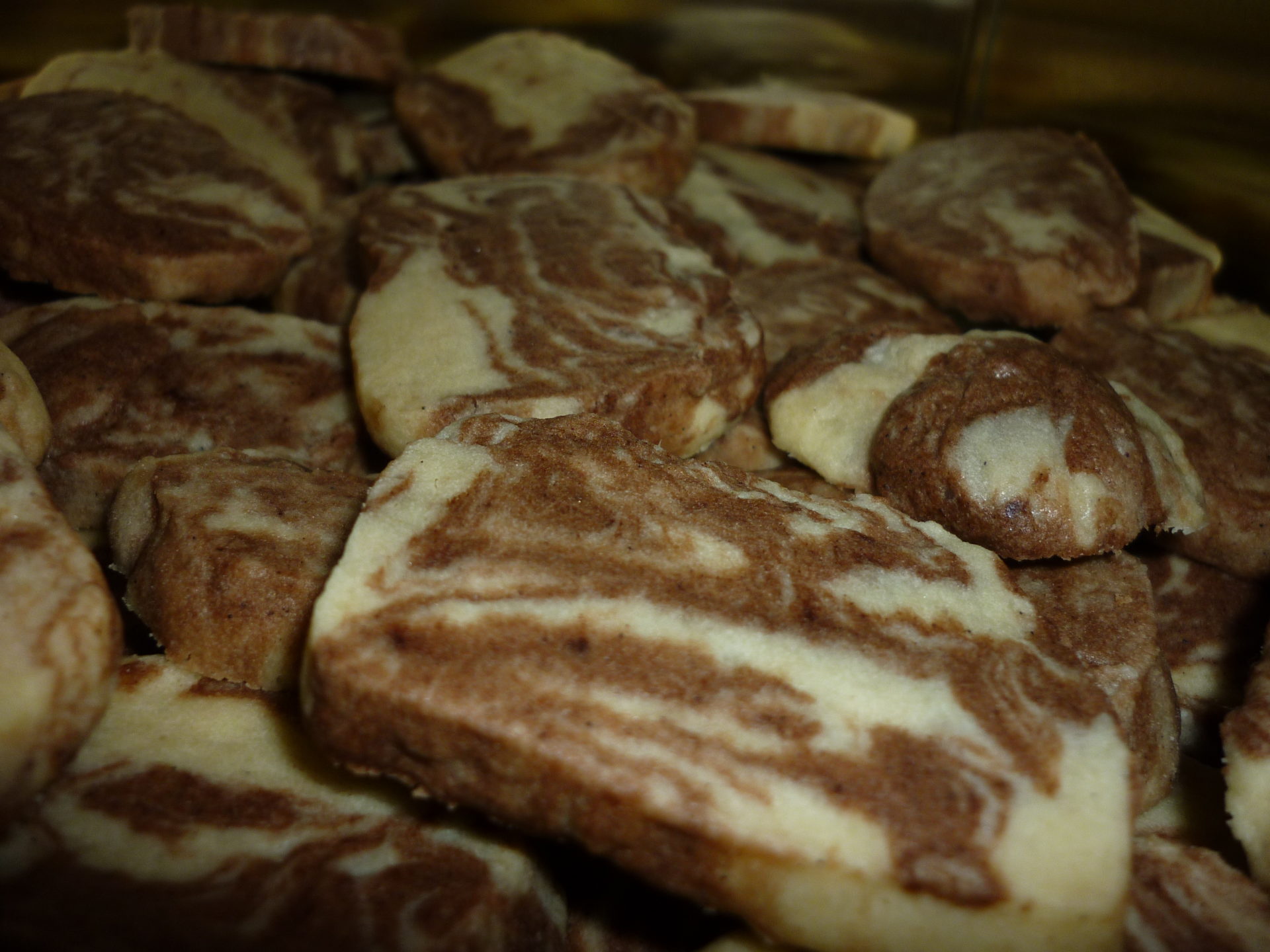 - Put 1/4 of the dough in a separate bowl and fold in cocoa. Gently mix cocoa dough into vanilla dough to create a marbled effect.